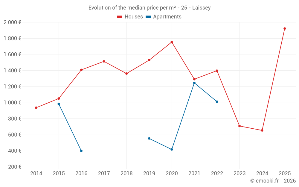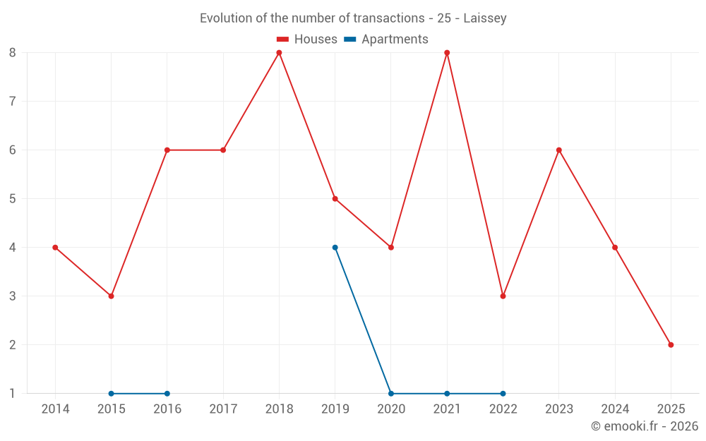 Real estate price map in the municipality of Laissey, choose a section to see transactions by parcel.