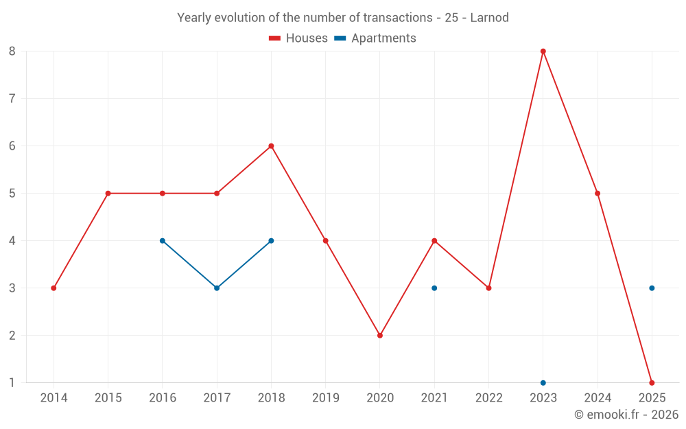 Real estate price map in the municipality of Larnod, choose a section to see transactions by parcel.