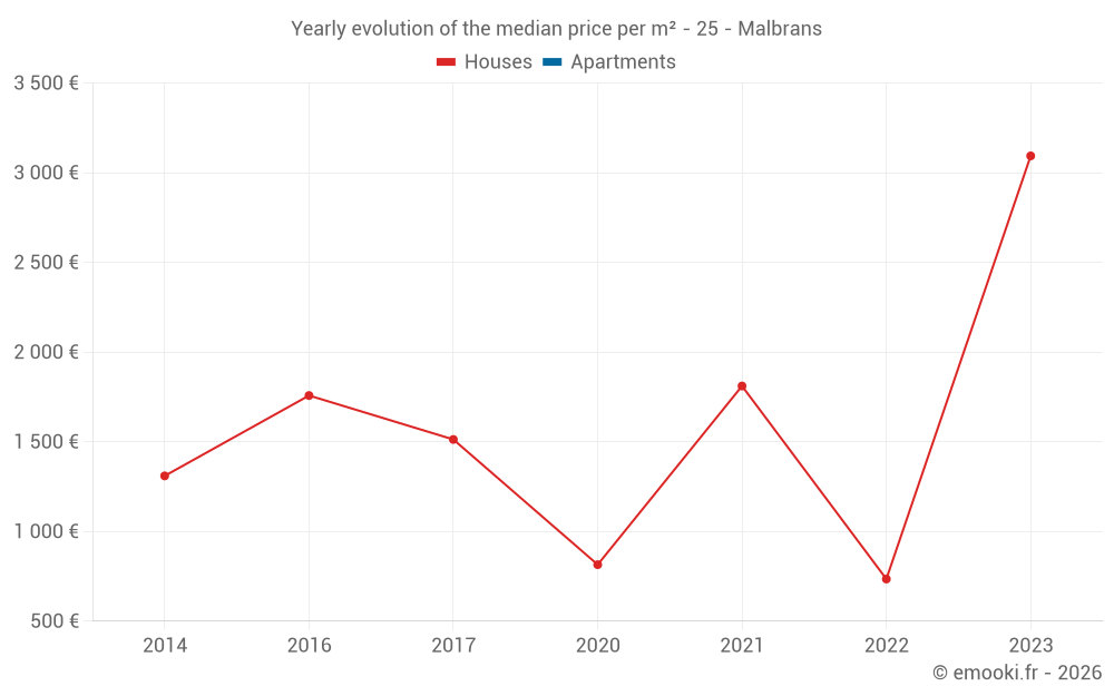 Real estate price map in the municipality of Malbrans, choose a section to see transactions by parcel.