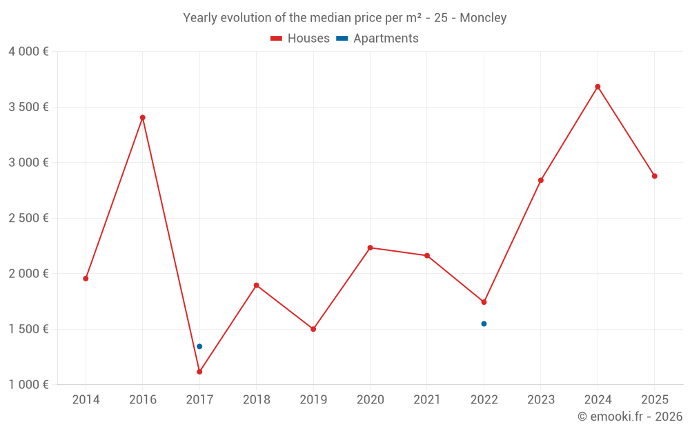 Real estate price map in the municipality of Moncley, choose a section to see transactions by parcel.