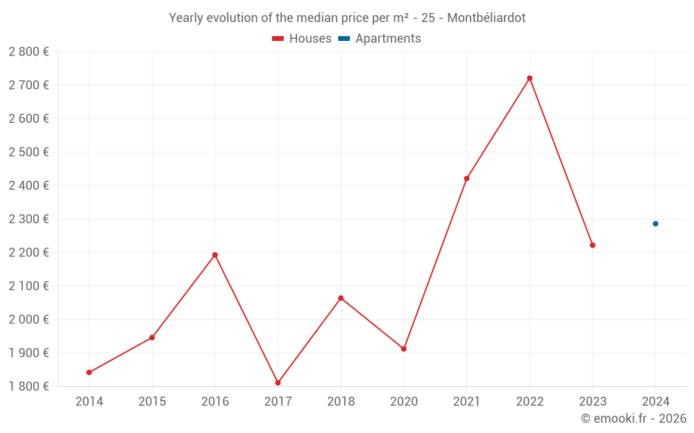 Evolution of the median price per m² of houses
