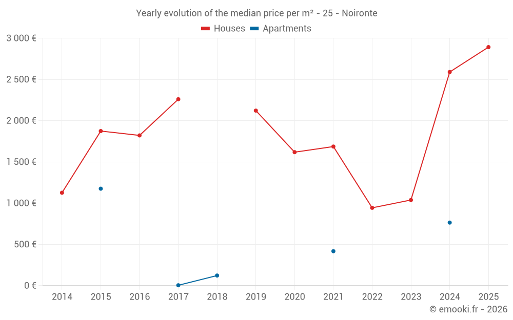 Real estate price map in the municipality of Noironte, choose a section to see transactions by parcel.