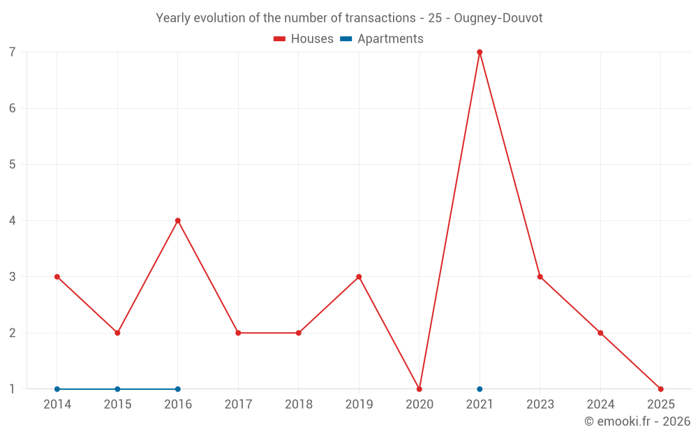 Real estate price map in the municipality of Ougney-Douvot, choose a section to see transactions by parcel.