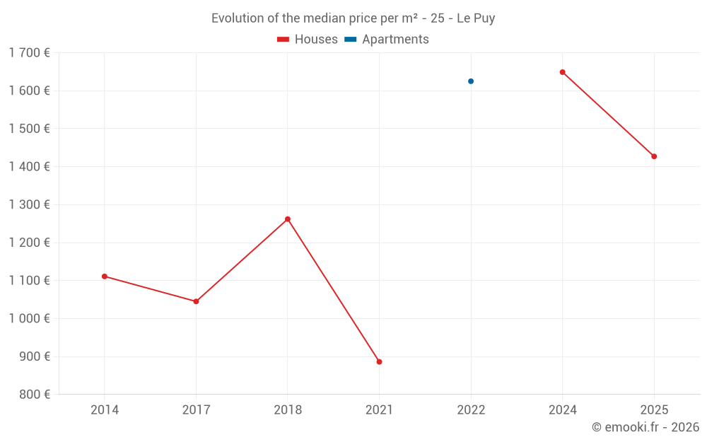 Real estate price map in the municipality of Le Puy, choose a section to see transactions by parcel.