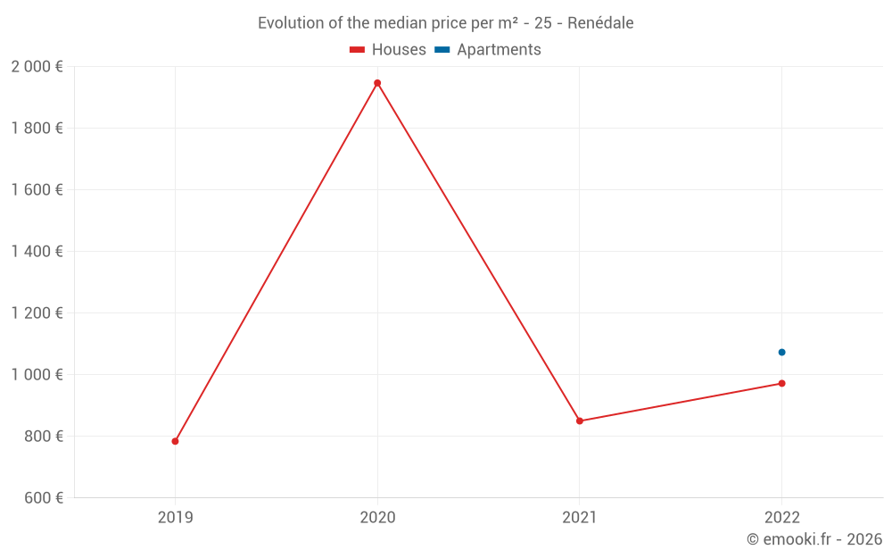 Real estate price map in the municipality of Renédale, choose a section to see transactions by parcel.