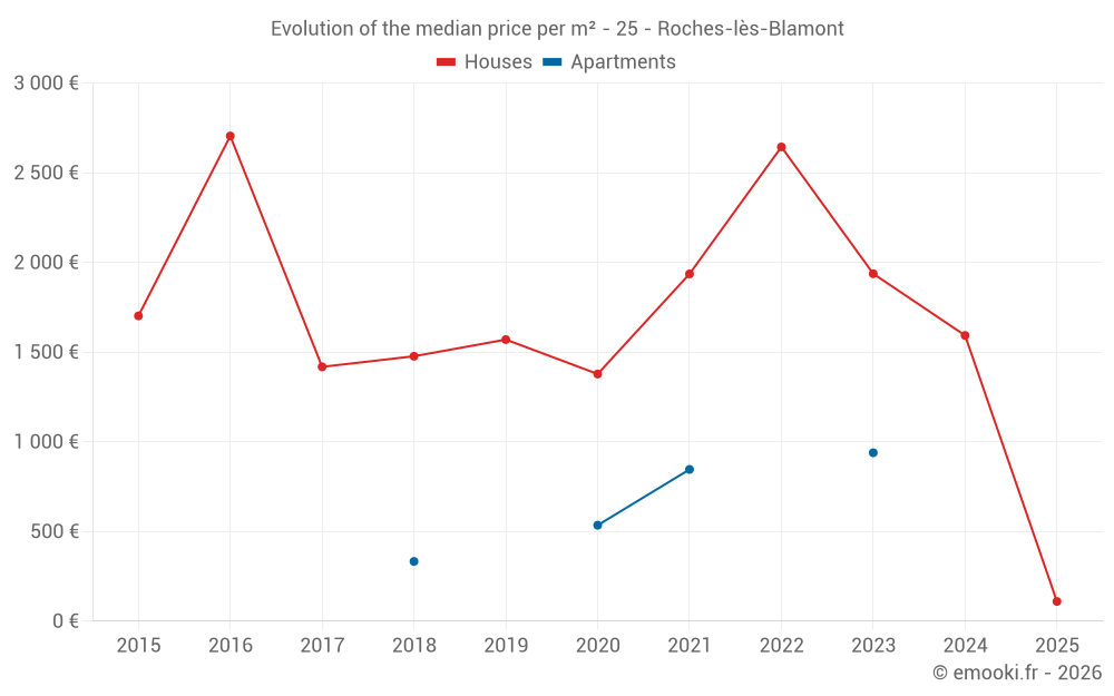 Real estate price map in the municipality of Roches-lès-Blamont, choose a section to see transactions by parcel.