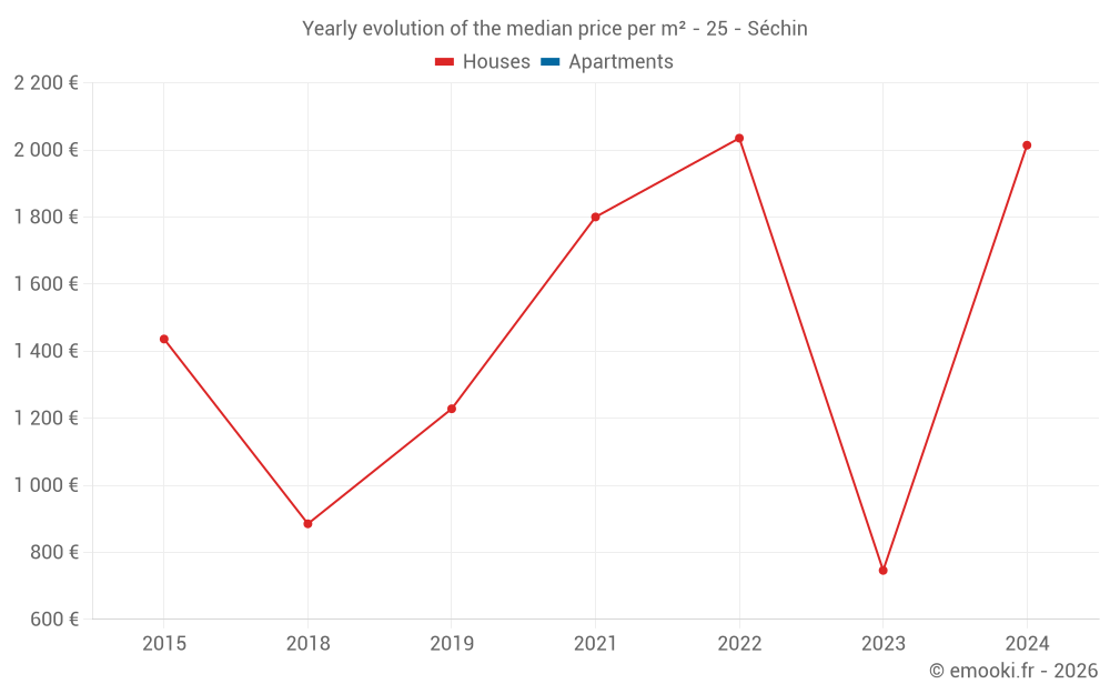 Evolution of the median price per m² of houses