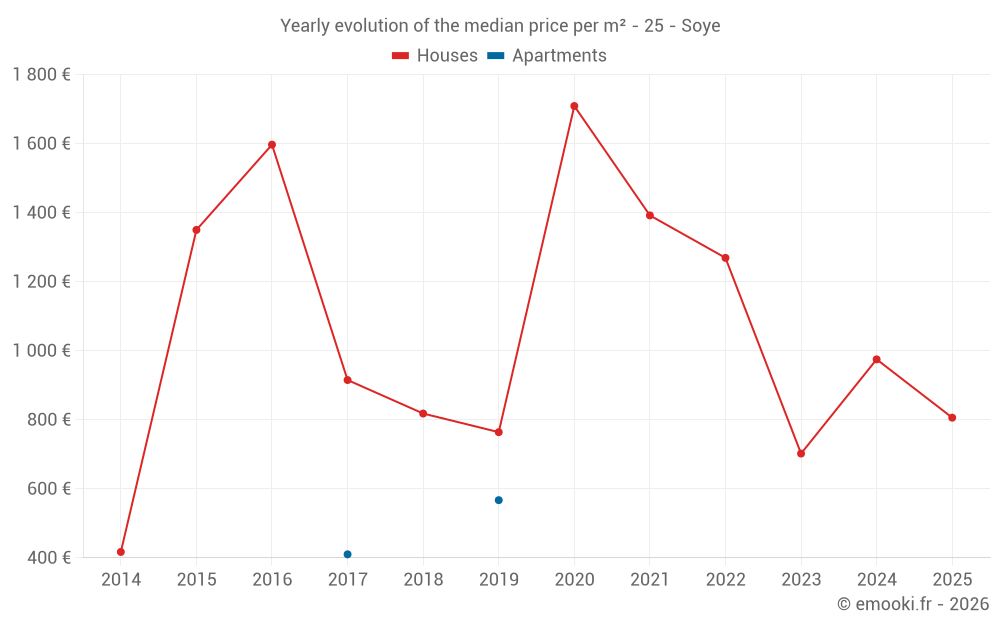 Real estate price map in the municipality of Soye, choose a section to see transactions by parcel.