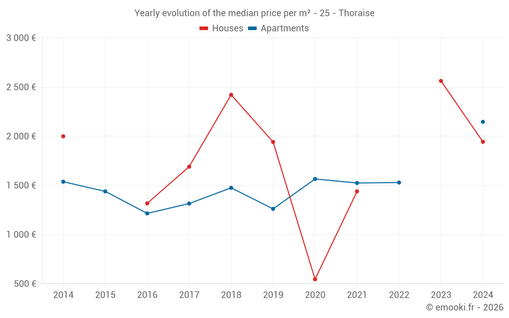 Real estate price map in the municipality of Thoraise, choose a section to see transactions by parcel.