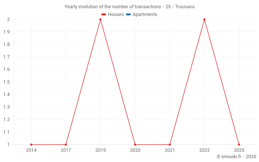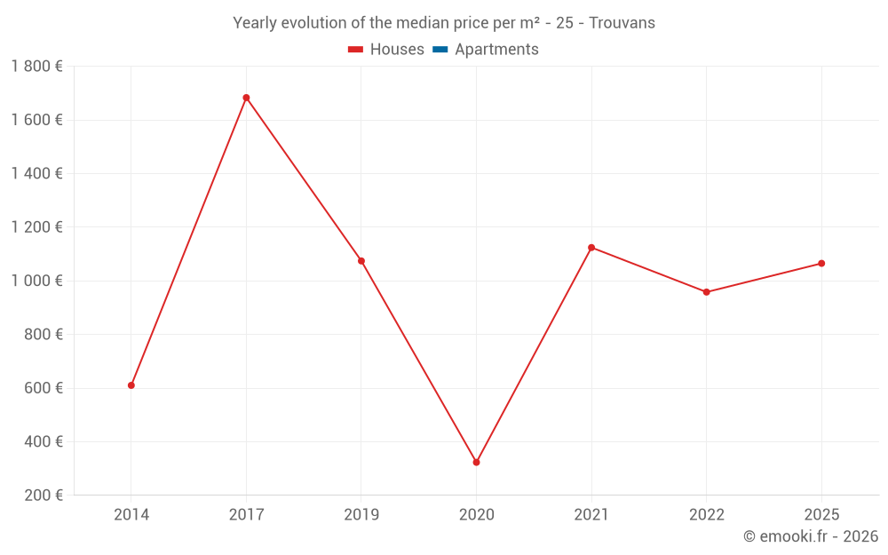 Real estate price map in the municipality of Trouvans, choose a section to see transactions by parcel.