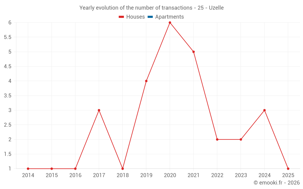 Real estate price map in the municipality of Uzelle, choose a section to see transactions by parcel.