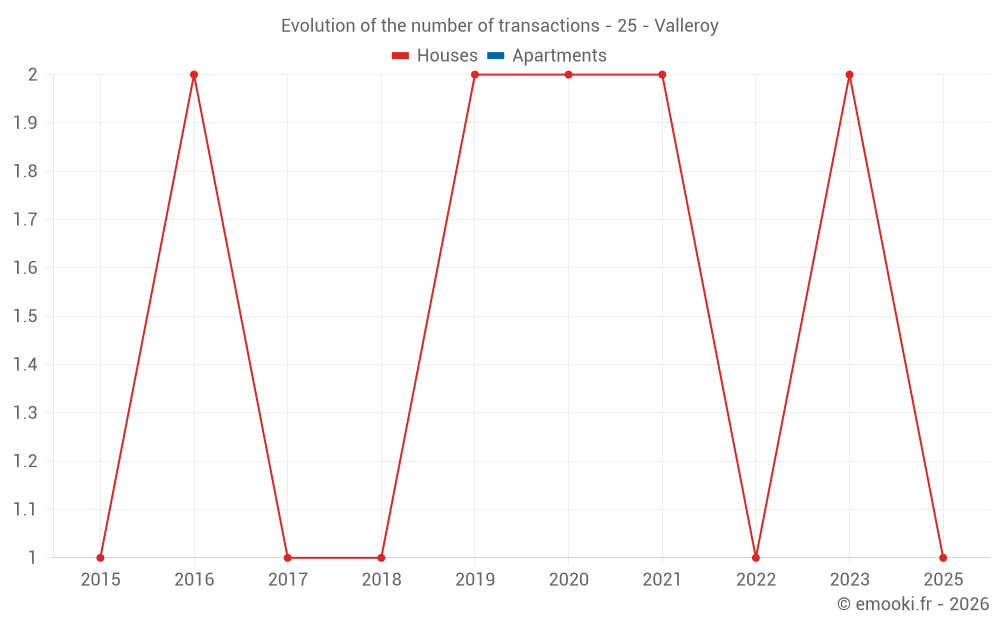 Real estate price map in the municipality of Valleroy, choose a section to see transactions by parcel.