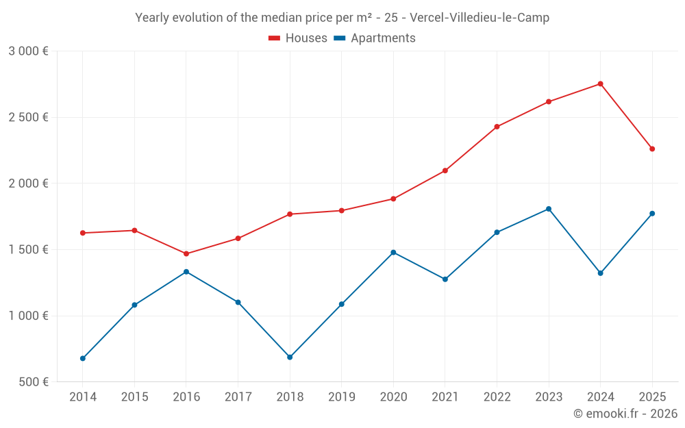 What is the price per m2 of houses in Vercel-Villedieu-le-Camp?