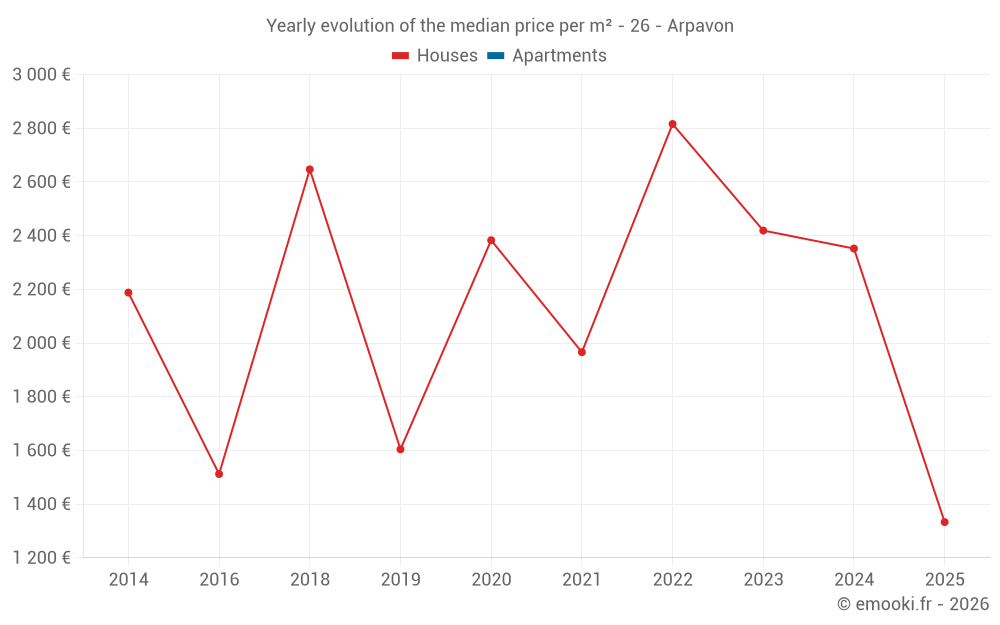Real estate price map in the municipality of Arpavon, choose a section to see transactions by parcel.