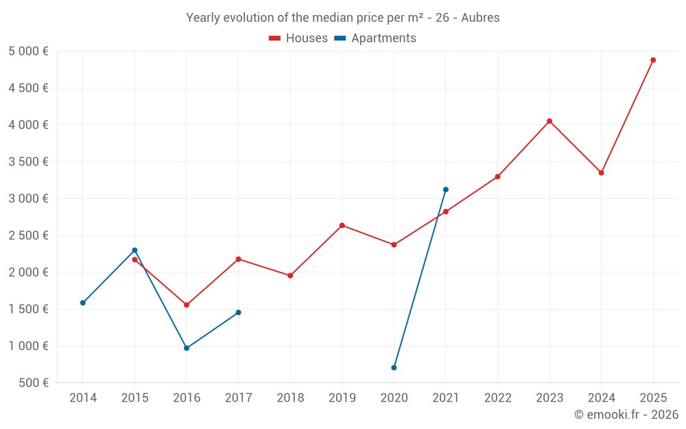 Real estate price map in the municipality of Aubres, choose a section to see transactions by parcel.