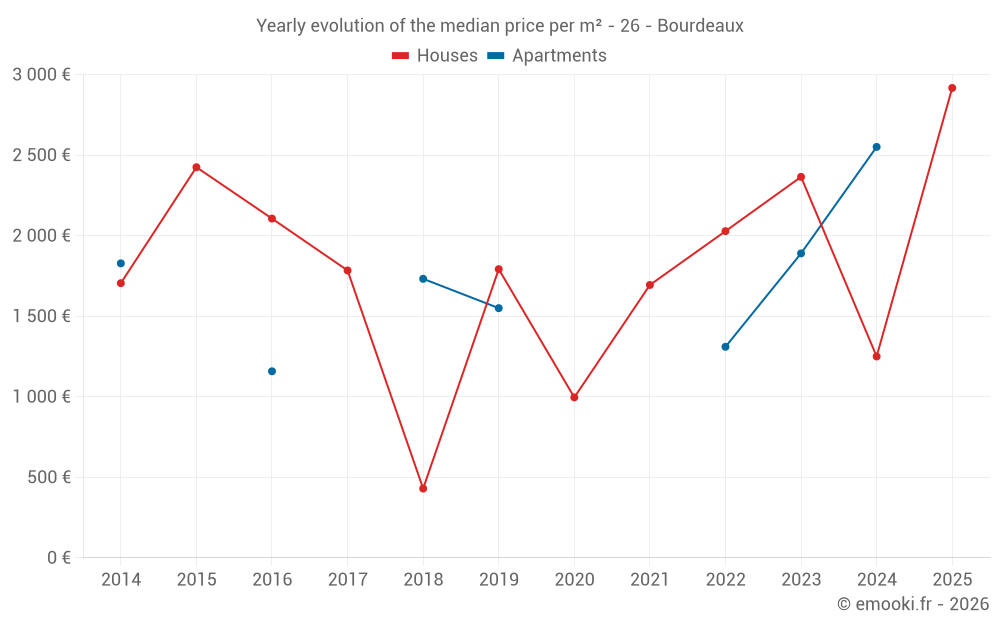 Evolution of the median price per m² of houses