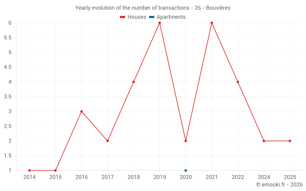 Real estate price map in the municipality of Bouvières, choose a section to see transactions by parcel.