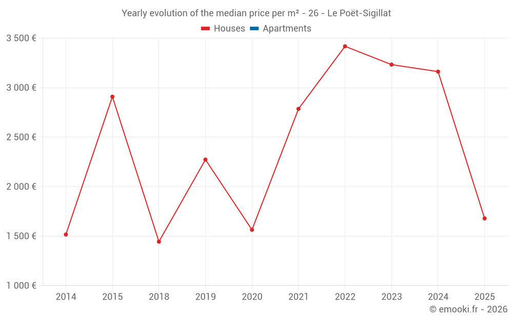 Real estate price map in the municipality of Le Poët-Sigillat, choose a section to see transactions by parcel.