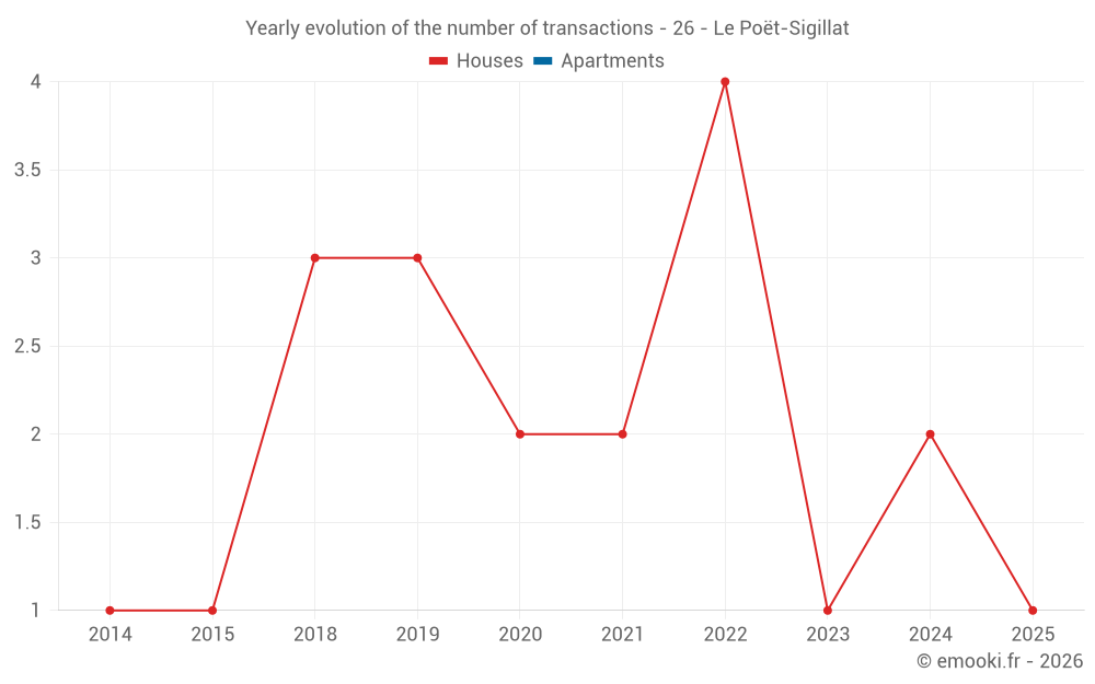 Warning, last year incomplete. Projections made based on the proportions between semesters of the previous year at the departmental/national level and by type of property.