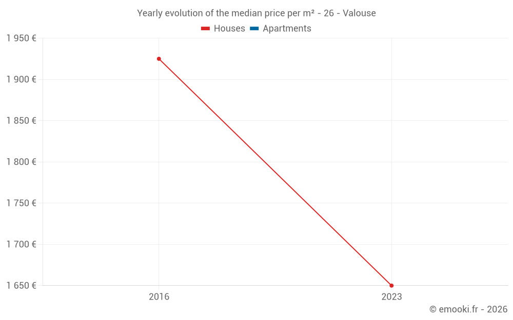 Real estate price map in the municipality of Valouse, choose a section to see transactions by parcel.