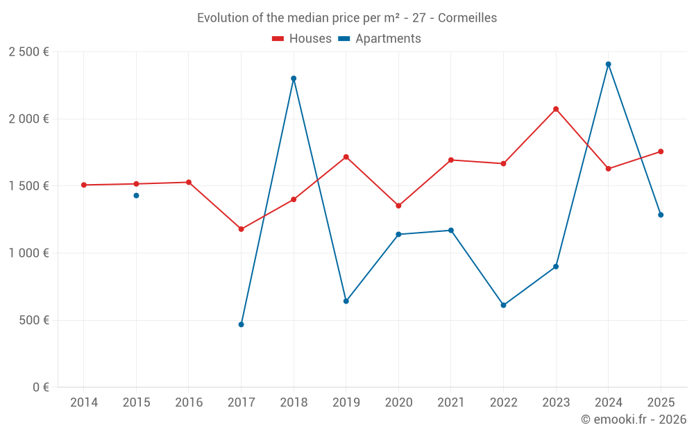 Median price on the 23 transactions of the last 12 months.