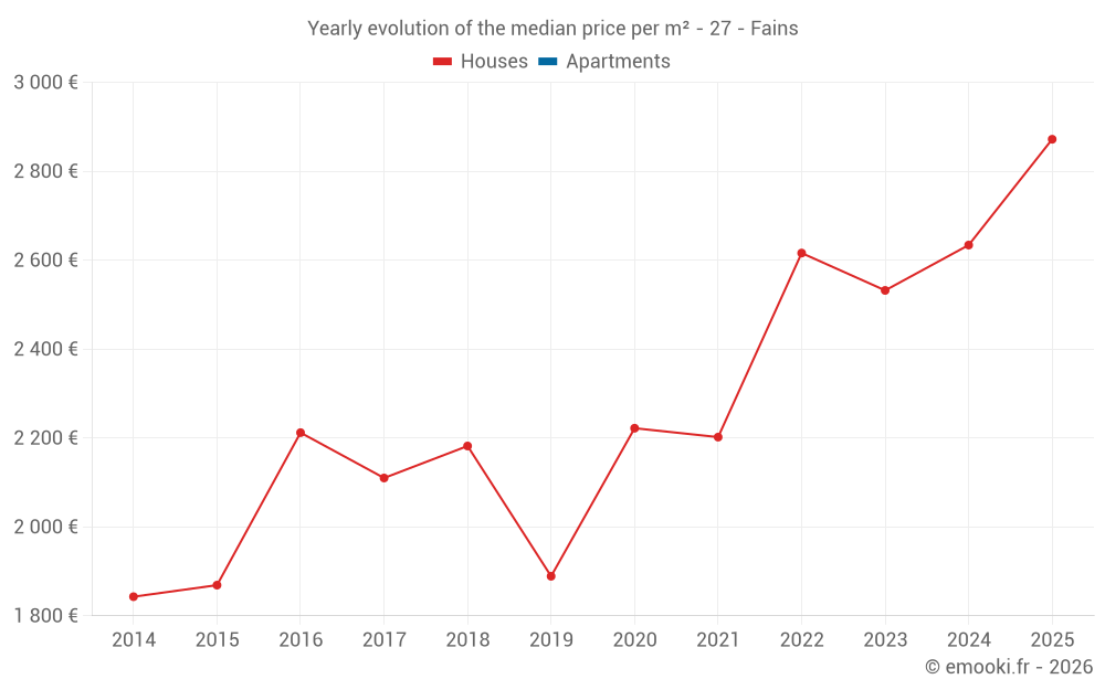 Real estate price map in the municipality of Fains, choose a section to see transactions by parcel.