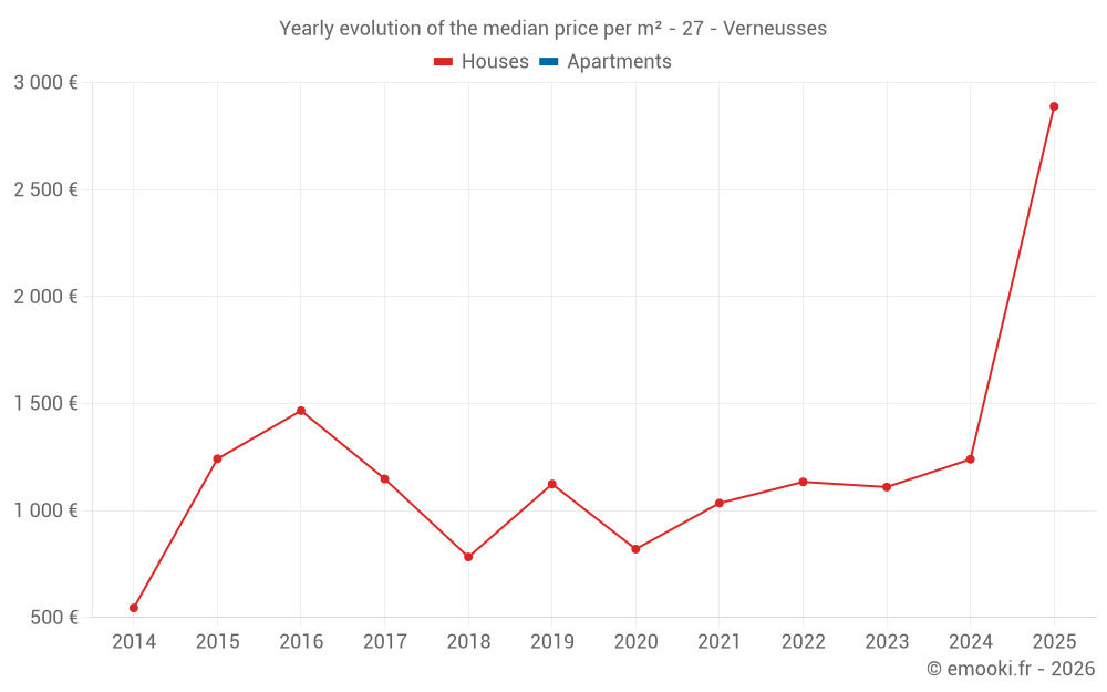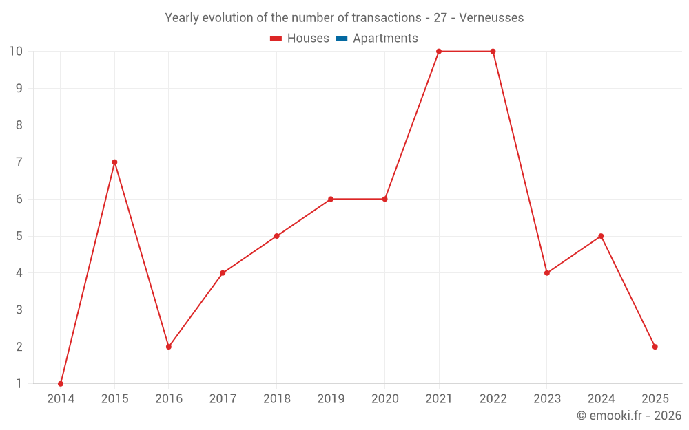 Real estate price map in the municipality of Verneusses, choose a section to see transactions by parcel.