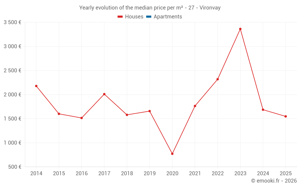 Real estate price map in the municipality of Vironvay, choose a section to see transactions by parcel.