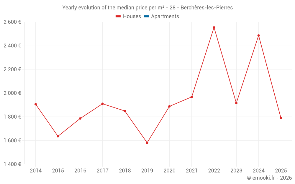 Real estate price map in the municipality of Berchères-les-Pierres, choose a section to see transactions by parcel.