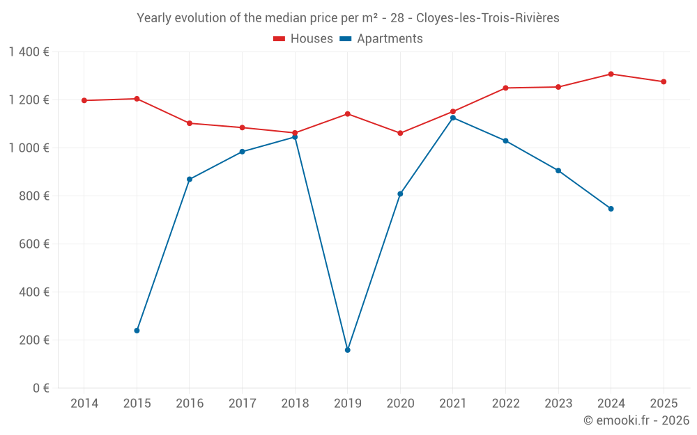 Price per m² in Cloyes-les-Trois-Rivières