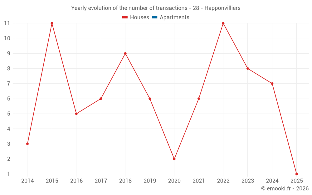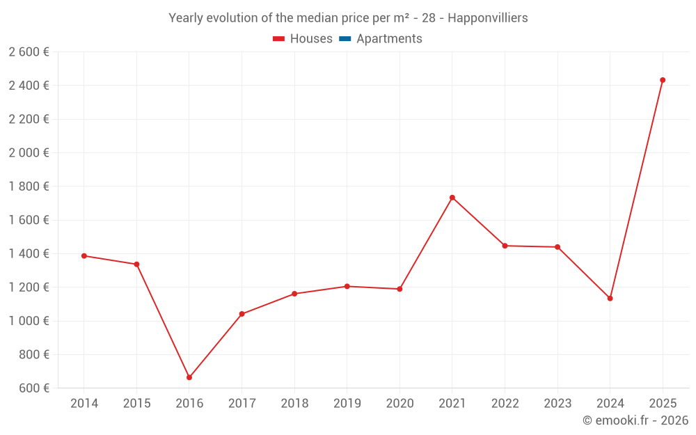 Real estate price map in the municipality of Happonvilliers, choose a section to see transactions by parcel.