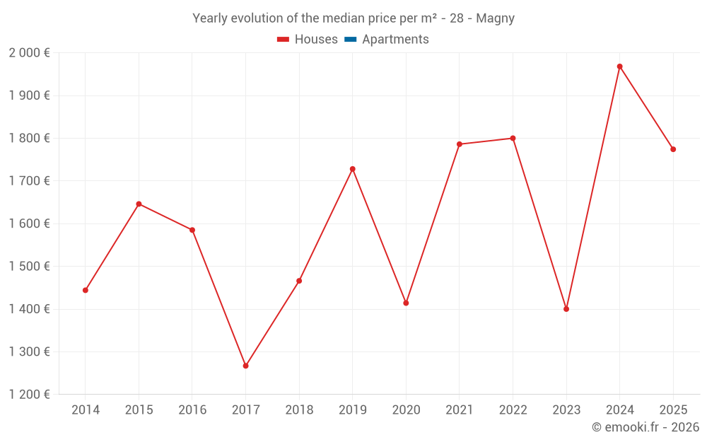 What is the price per m2 of houses in Magny?