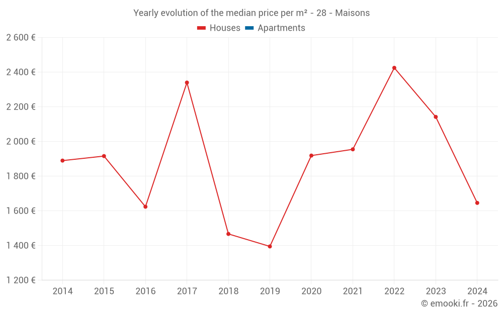 Evolution of the median price per m² of houses
