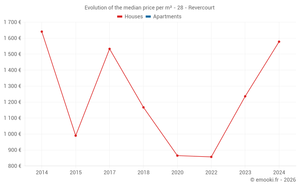 Real estate price map in the municipality of Revercourt, choose a section to see transactions by parcel.