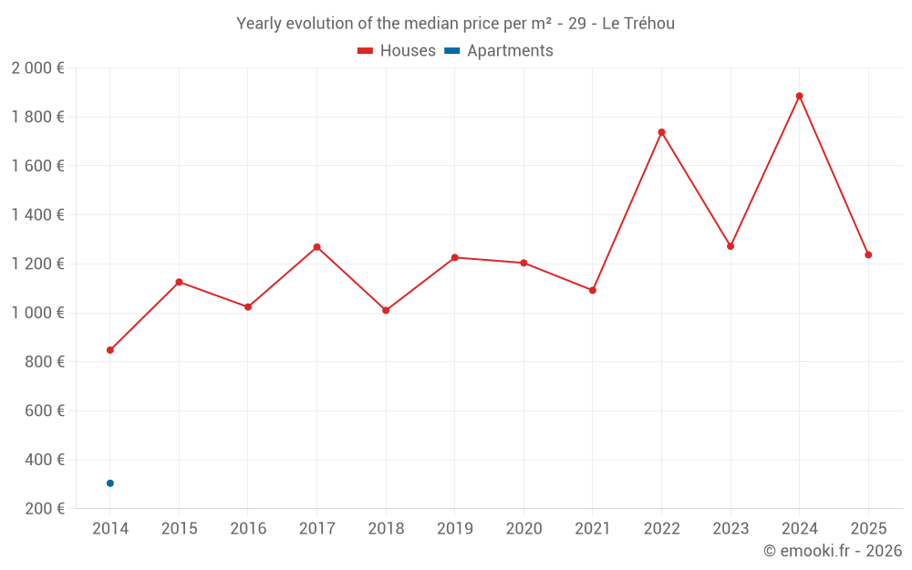 Real estate price map in the municipality of Le Tréhou, choose a section to see transactions by parcel.