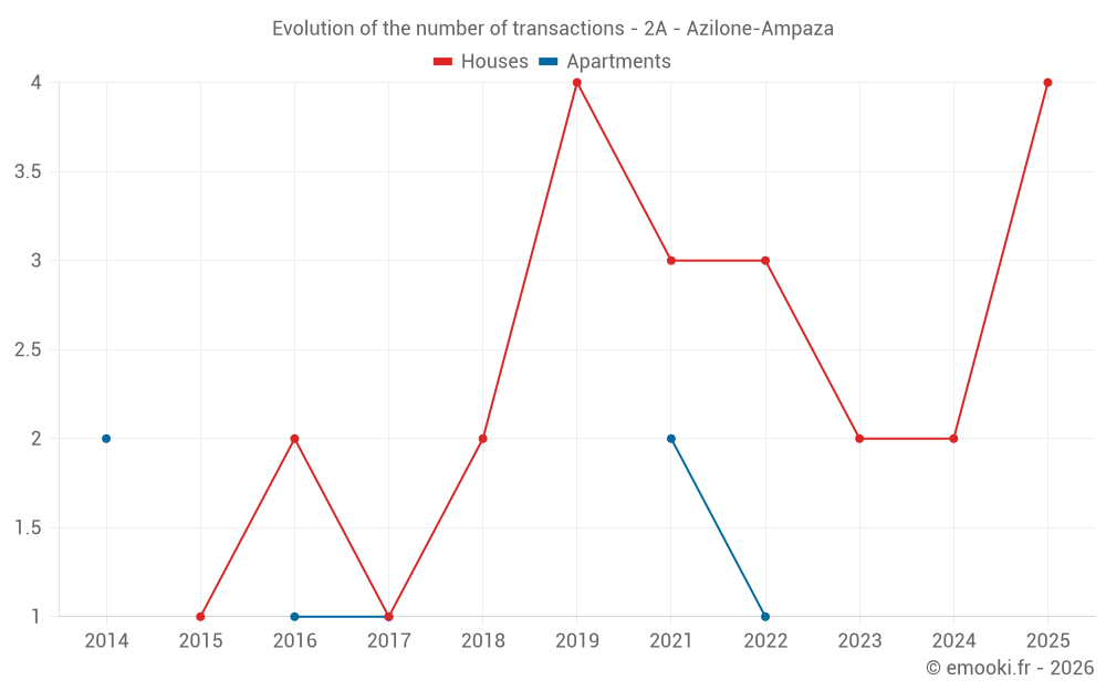 Real estate price map in the municipality of Azilone-Ampaza, choose a section to see transactions by parcel.