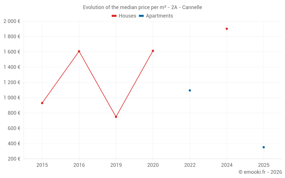 Real estate price map in the municipality of Cannelle, choose a section to see transactions by parcel.
