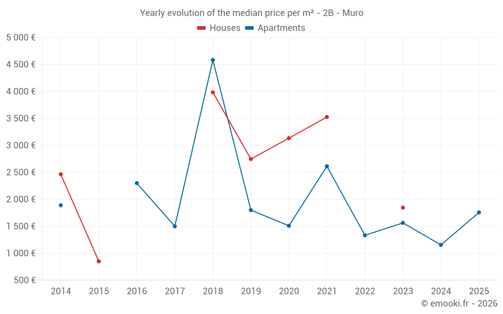 Real estate price map in the municipality of Muro, choose a section to see transactions by parcel.