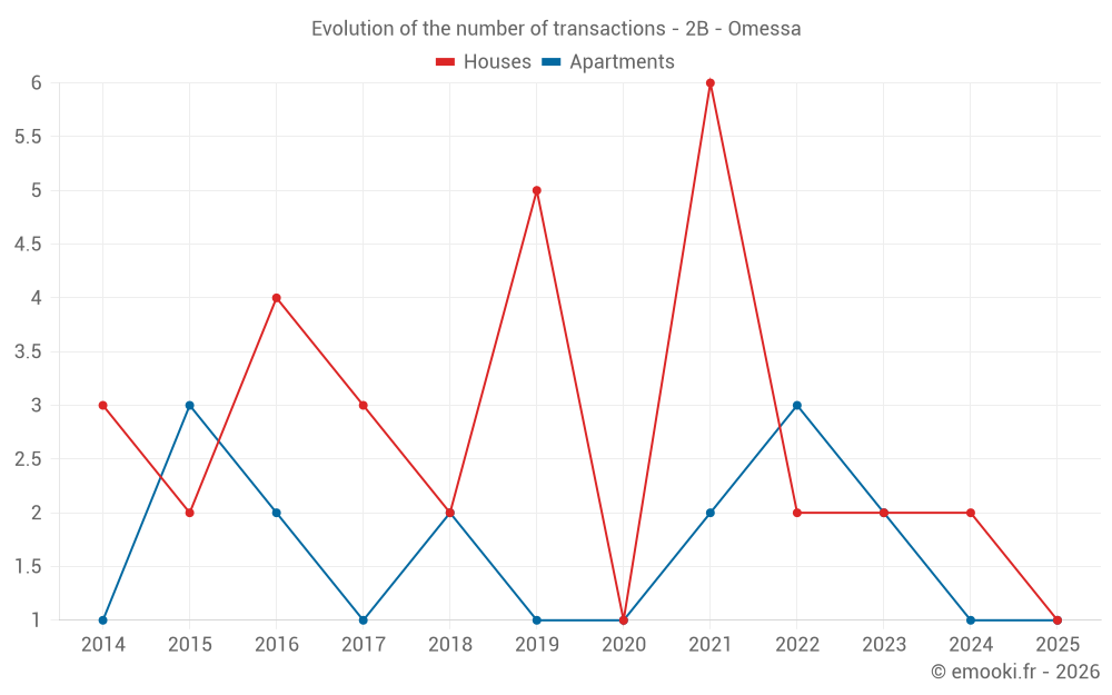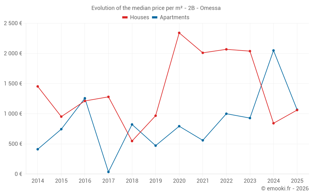 Real estate price map in the municipality of Omessa, choose a section to see transactions by parcel.