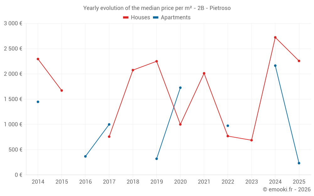 Real estate price map in the municipality of Pietroso, choose a section to see transactions by parcel.