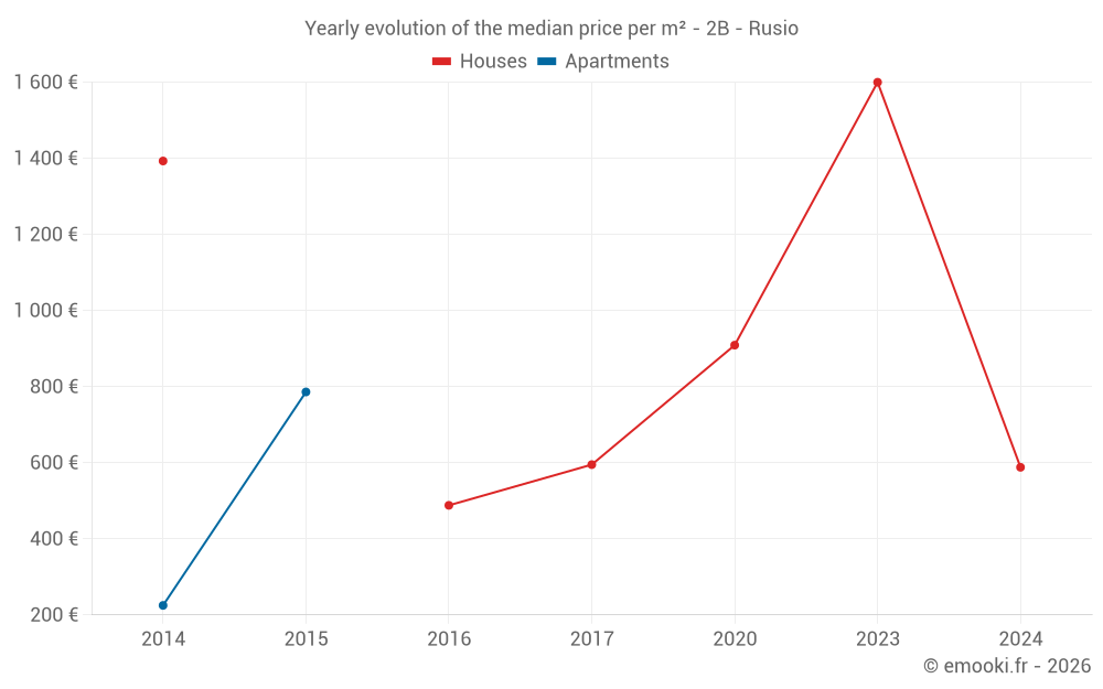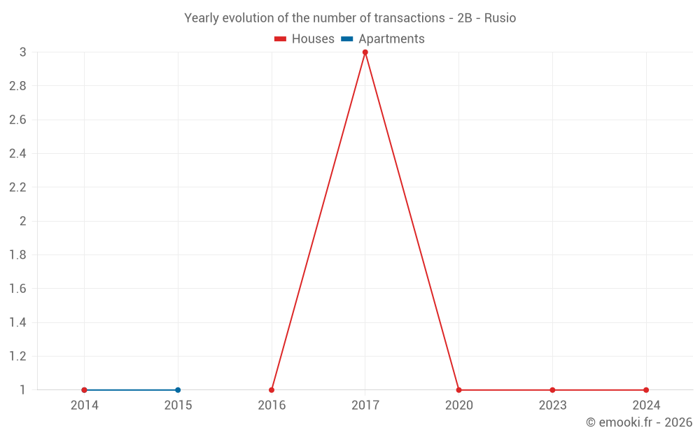 Real estate price map in the municipality of Rusio, choose a section to see transactions by parcel.
