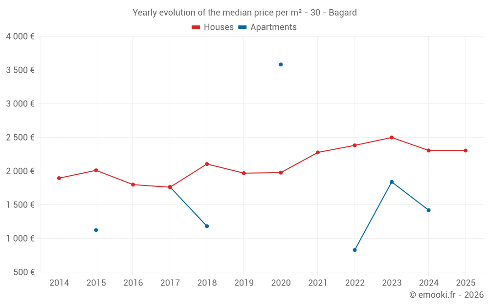 What is the price per m2 of houses in Bagard?