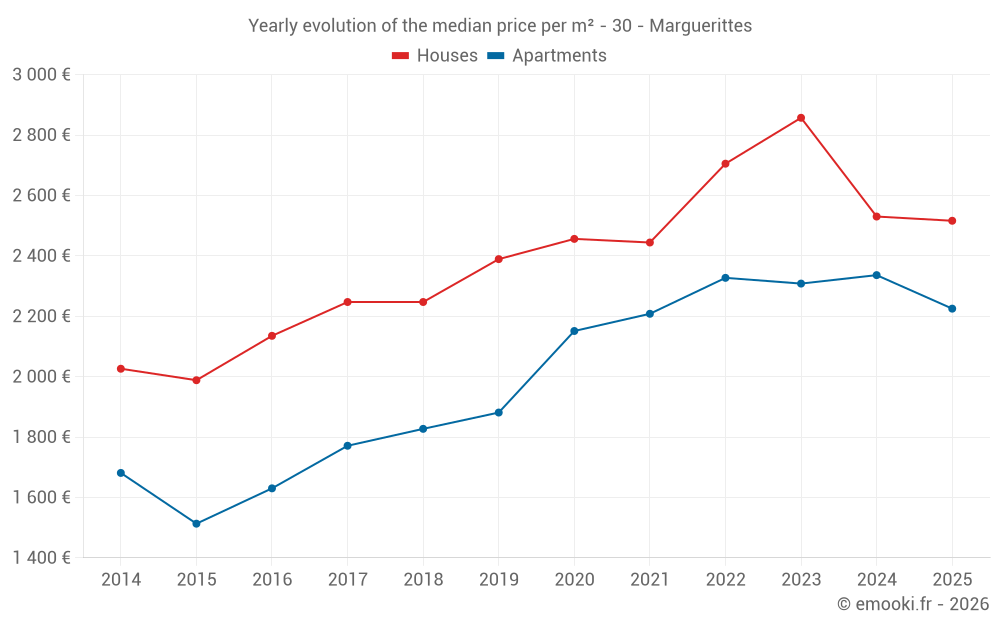 Price per m² in Marguerittes