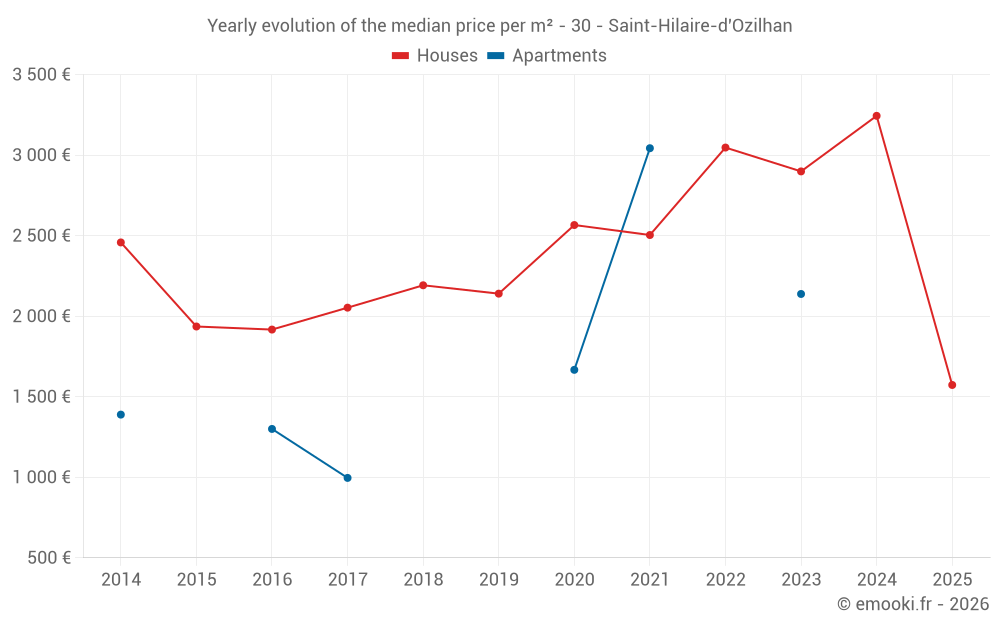What is the price per m2 of houses in Saint-Hilaire-d'Ozilhan?