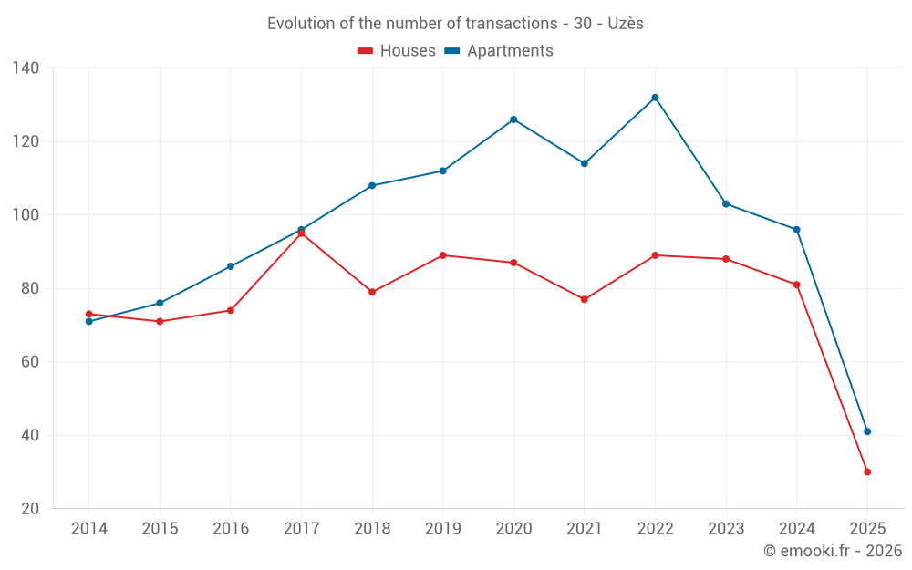 Median price on the 30 transactions of the last 6 months.