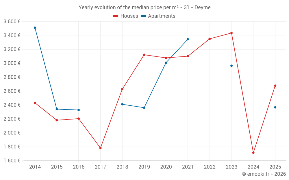 Real estate price map in the municipality of Deyme, choose a section to see transactions by parcel.