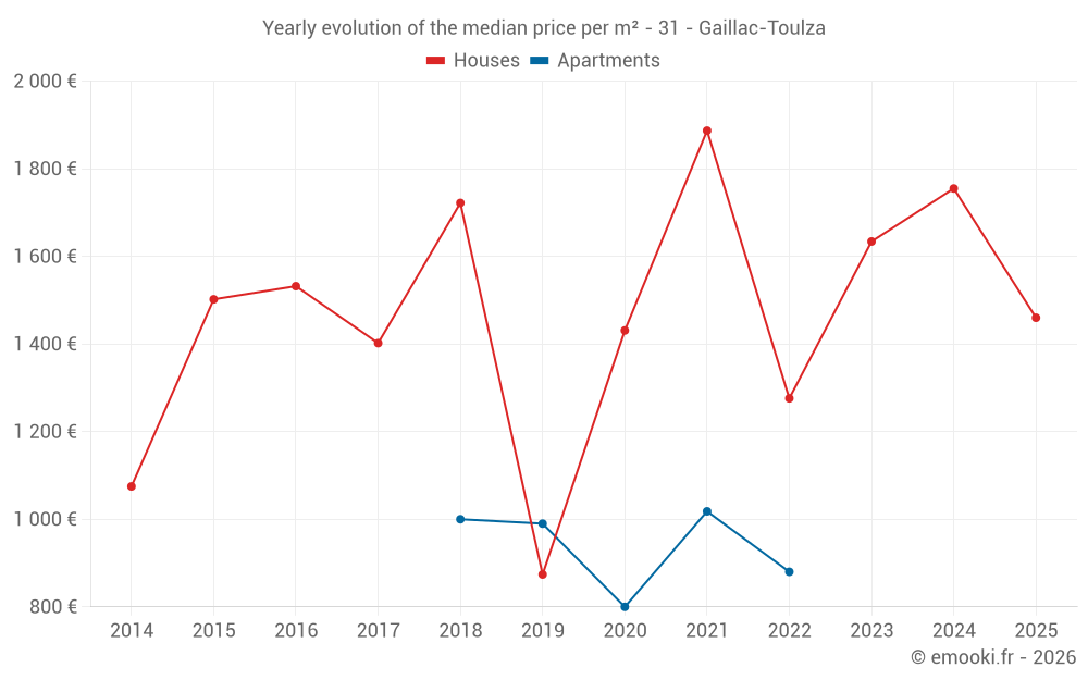 What is the price per m2 of houses in Gaillac-Toulza?