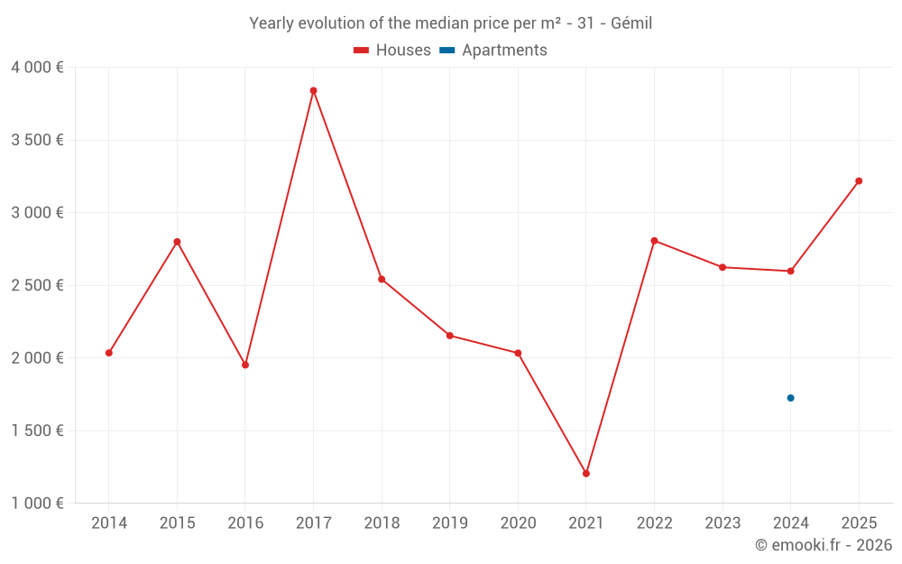 Real estate price map in the municipality of Gémil, choose a section to see transactions by parcel.