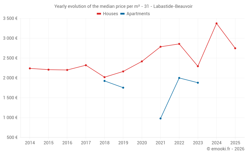 Price per m² in Labastide-Beauvoir