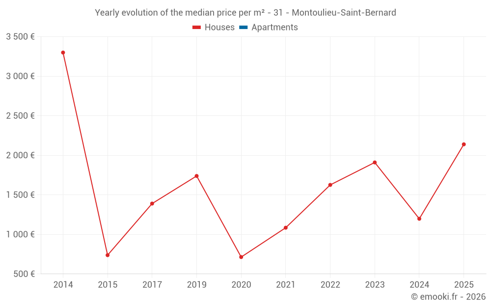 Evolution of the median price per m² of houses